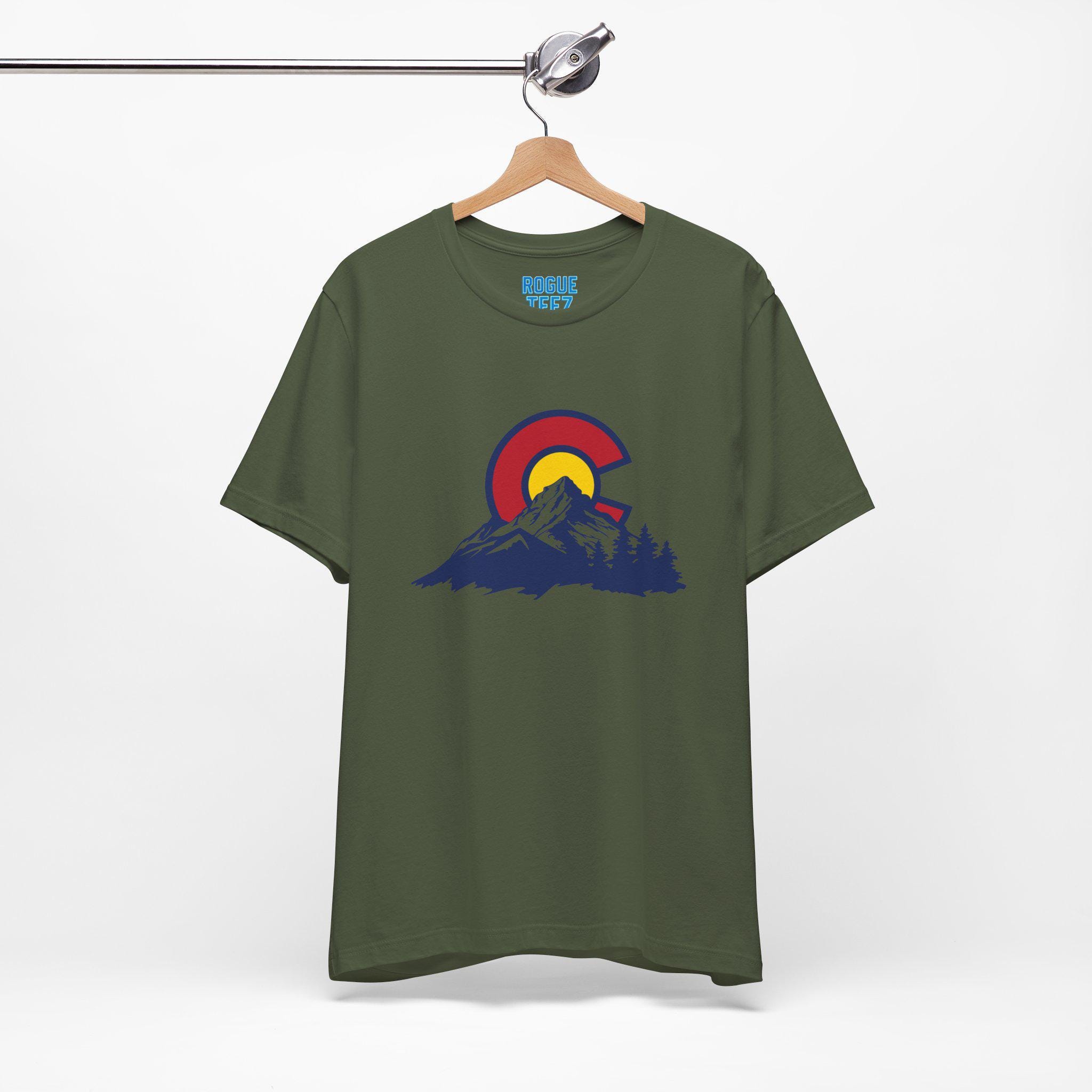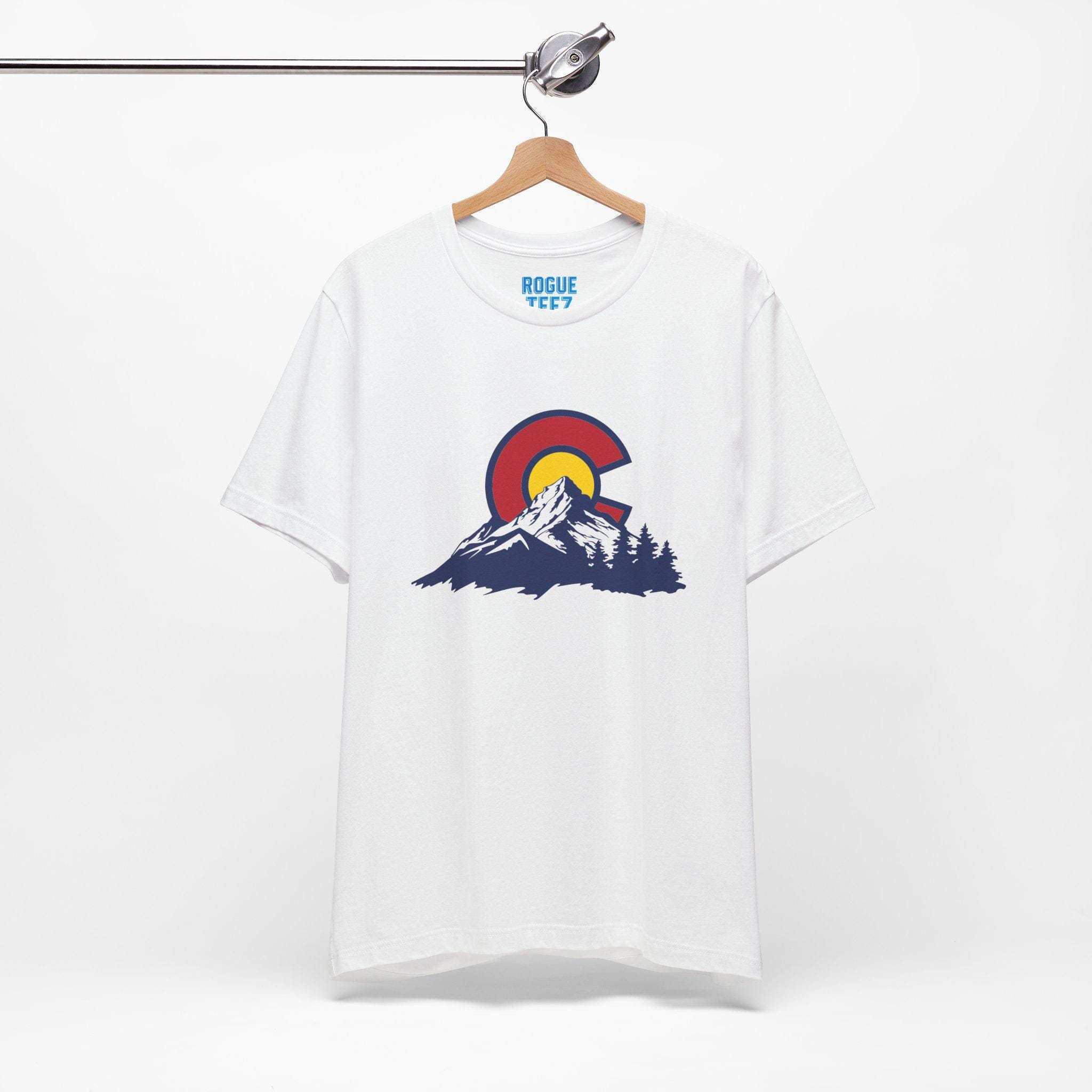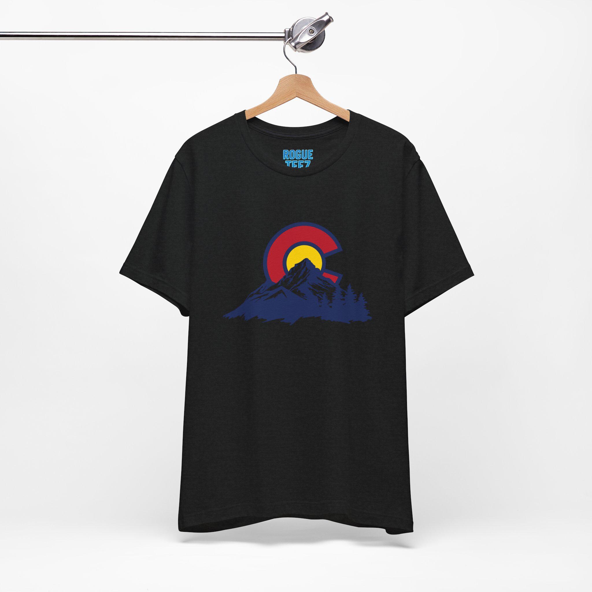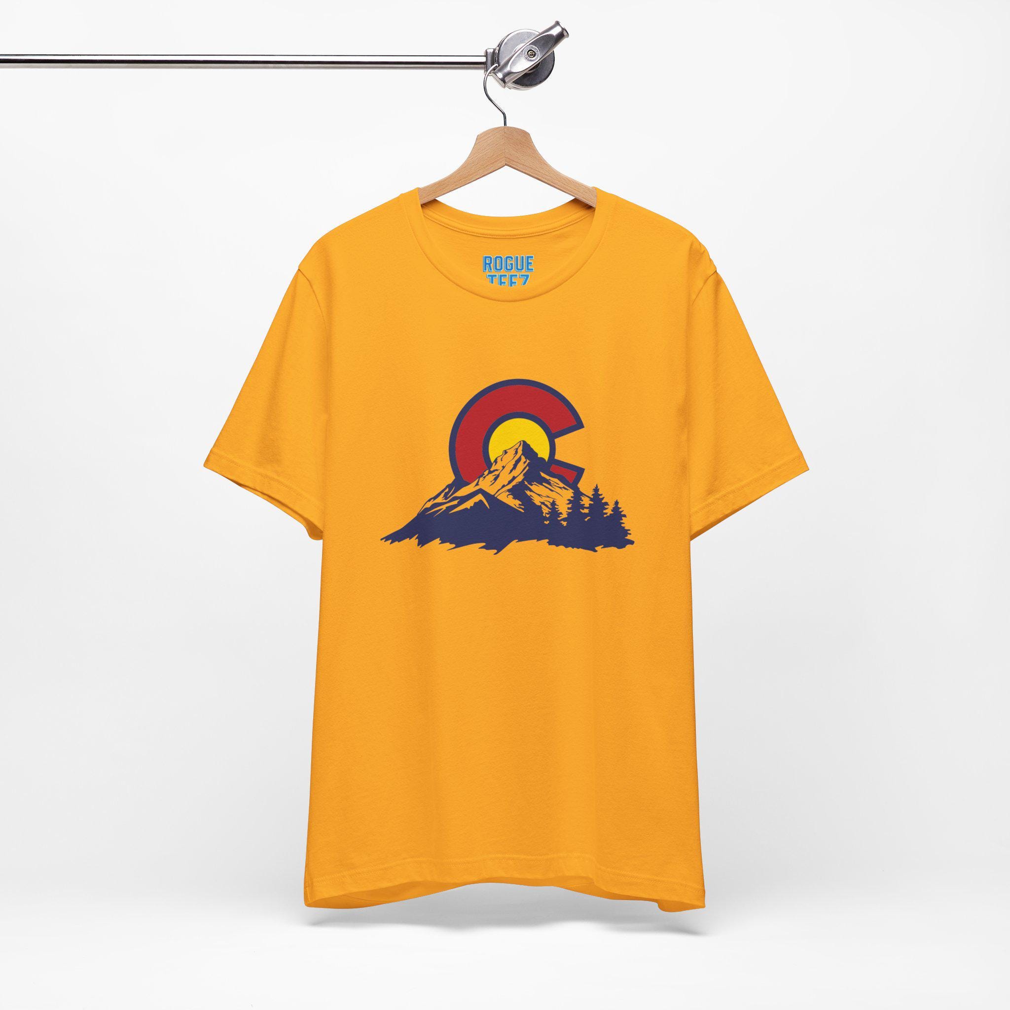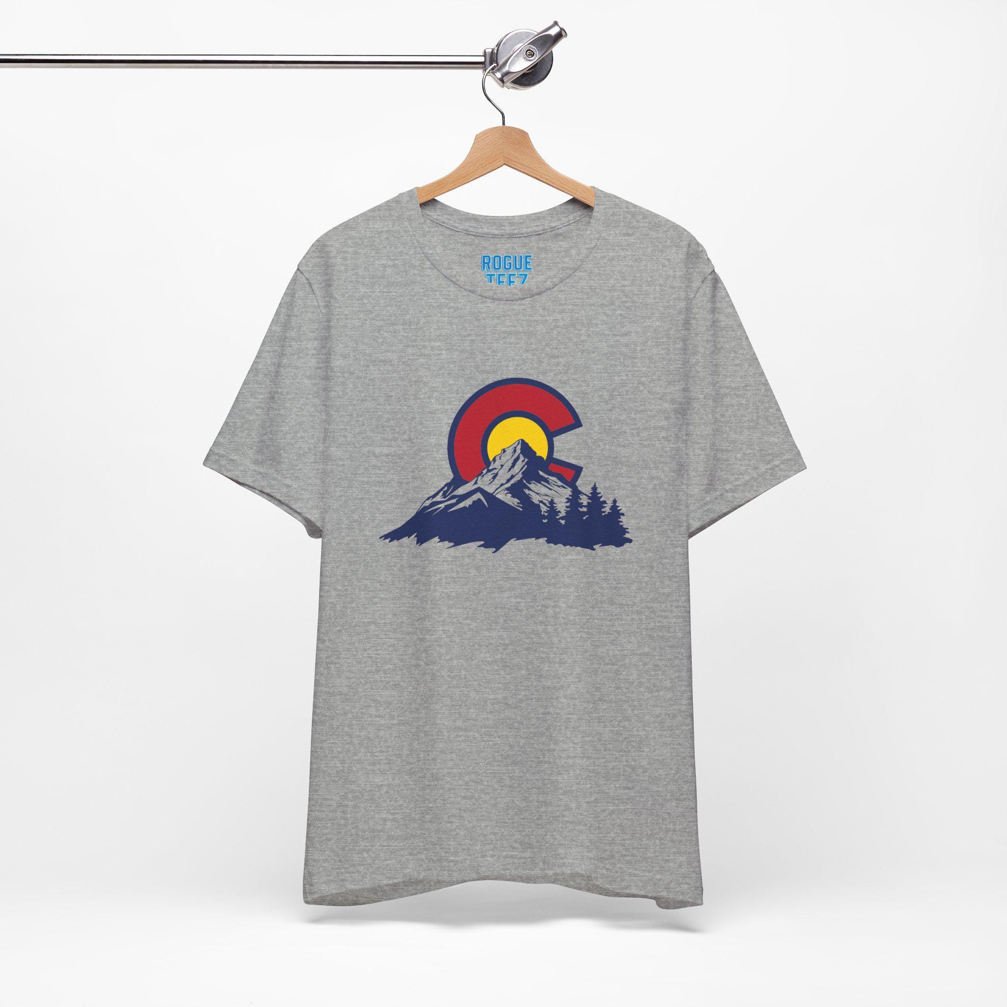 A Colorado-themed T-shirt made from heavy cotton, perfect for those who love the state's landscape and outdoor activities. This unisex tee is ideal for adults looking to show their love for Colorado during vacations, outdoor adventures, or as a souvenir from the state.