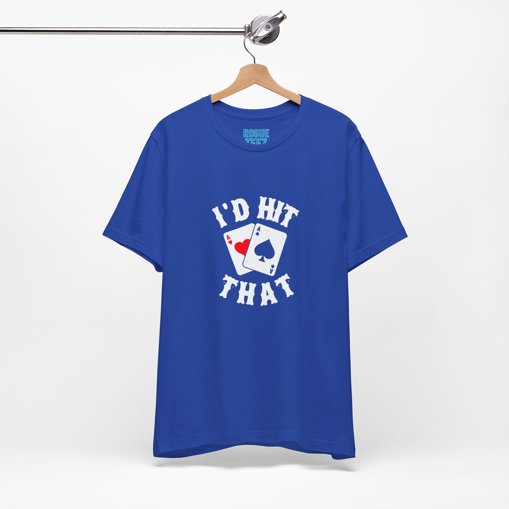 This 'I'd Hit That' T-shirt exudes a playful and cheeky vibe, perfect for casino enthusiasts or anyone with a great sense of humor. Add some fun to your wardrobe with this unique design, great for casual outings or relaxed social events. Ideal for adults looking for a fun and quirky tee to wear during game nights, casino-themed parties, or leisurely hangouts.
