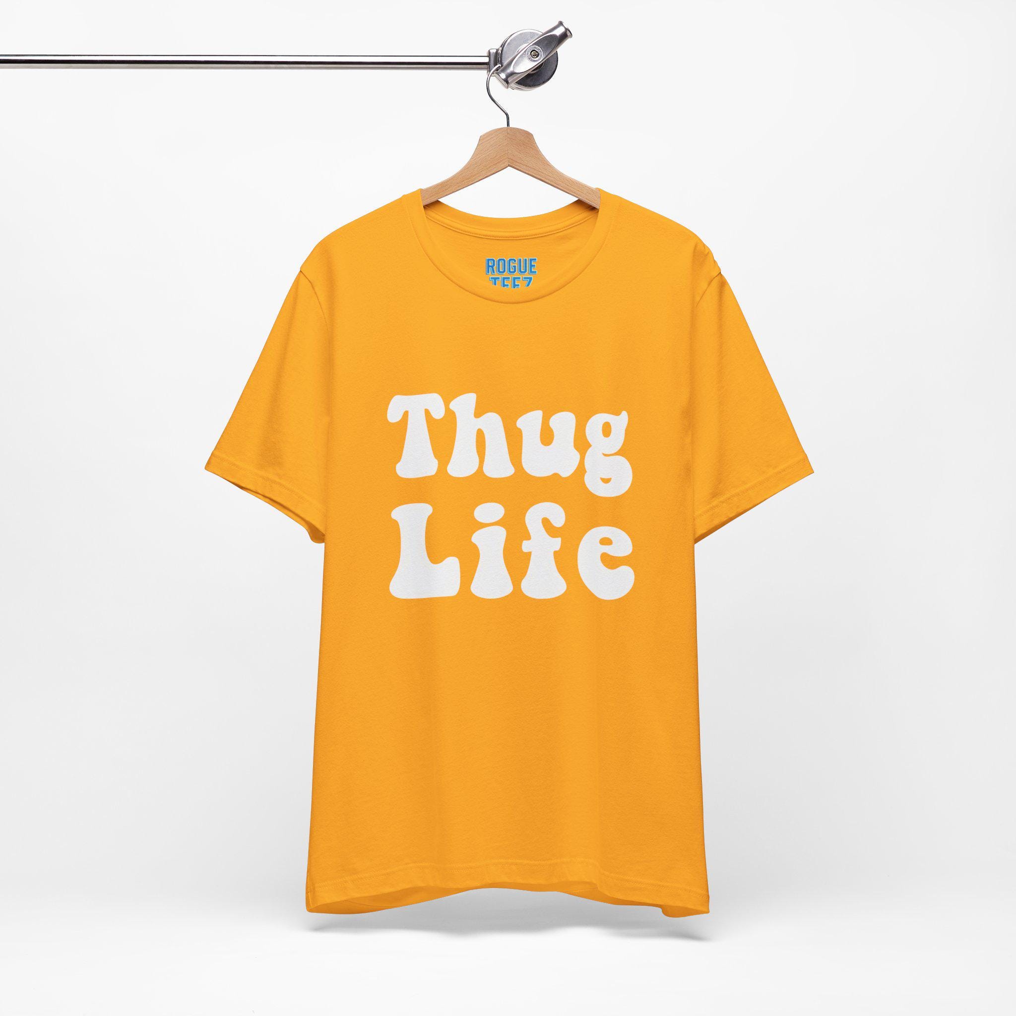 A rebellious and edgy Thug Life T-Shirt perfect for those who want to make a bold statement. This garment-dyed tee is versatile and comfortable, suitable for casual wear or as a statement piece in a semi-formal outfit. Ideal for adults who appreciate unique and expressive fashion. Perfect for everyday wear, parties, festivals, and concerts.