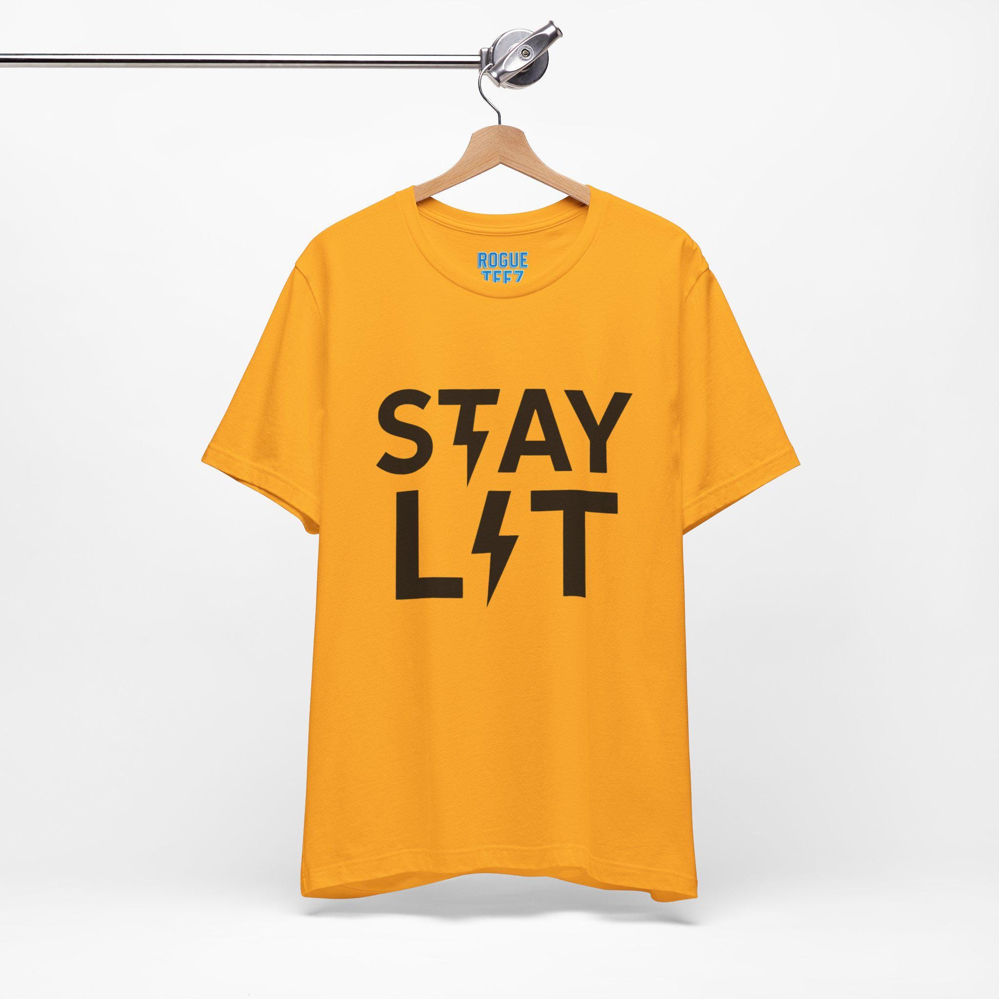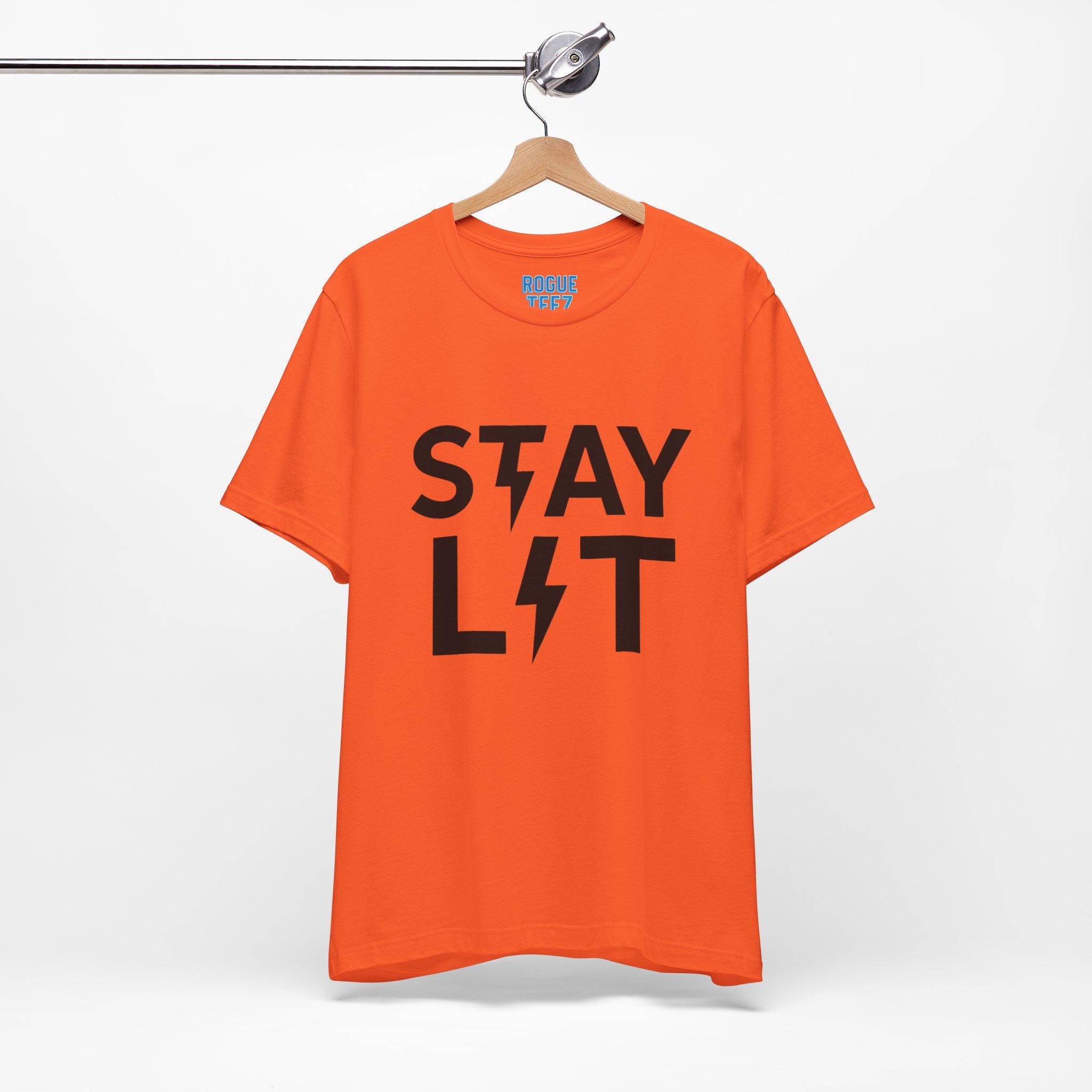 This Stay Lit T-Shirt exudes a vibrant and energetic vibe, perfect for those who want to add a pop of color to their wardrobe. It's ideal for casual wear and can be a great conversation starter at parties or social gatherings. This shirt is relevant for holidays like Halloween, music festivals, or any occasion where you want to stand out.