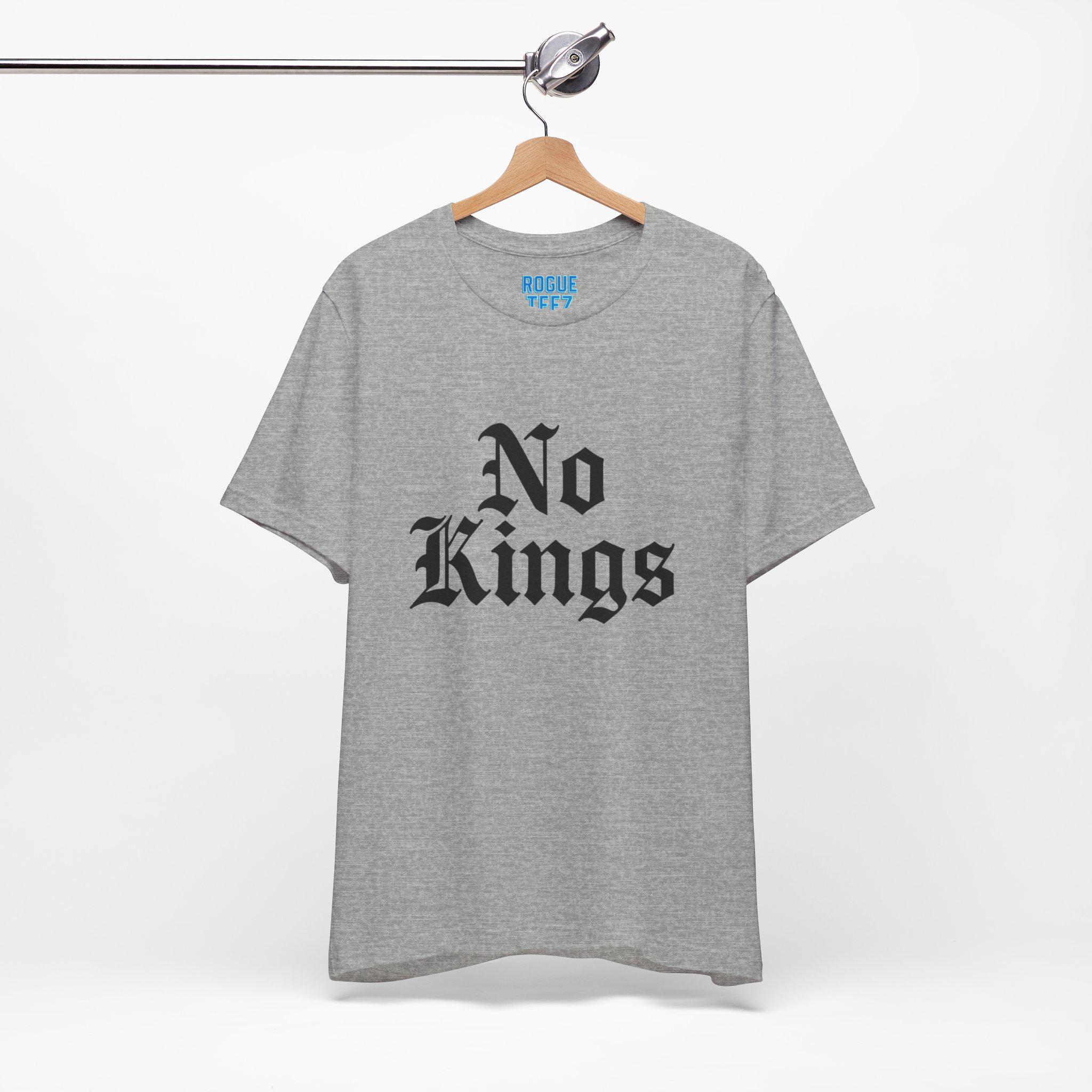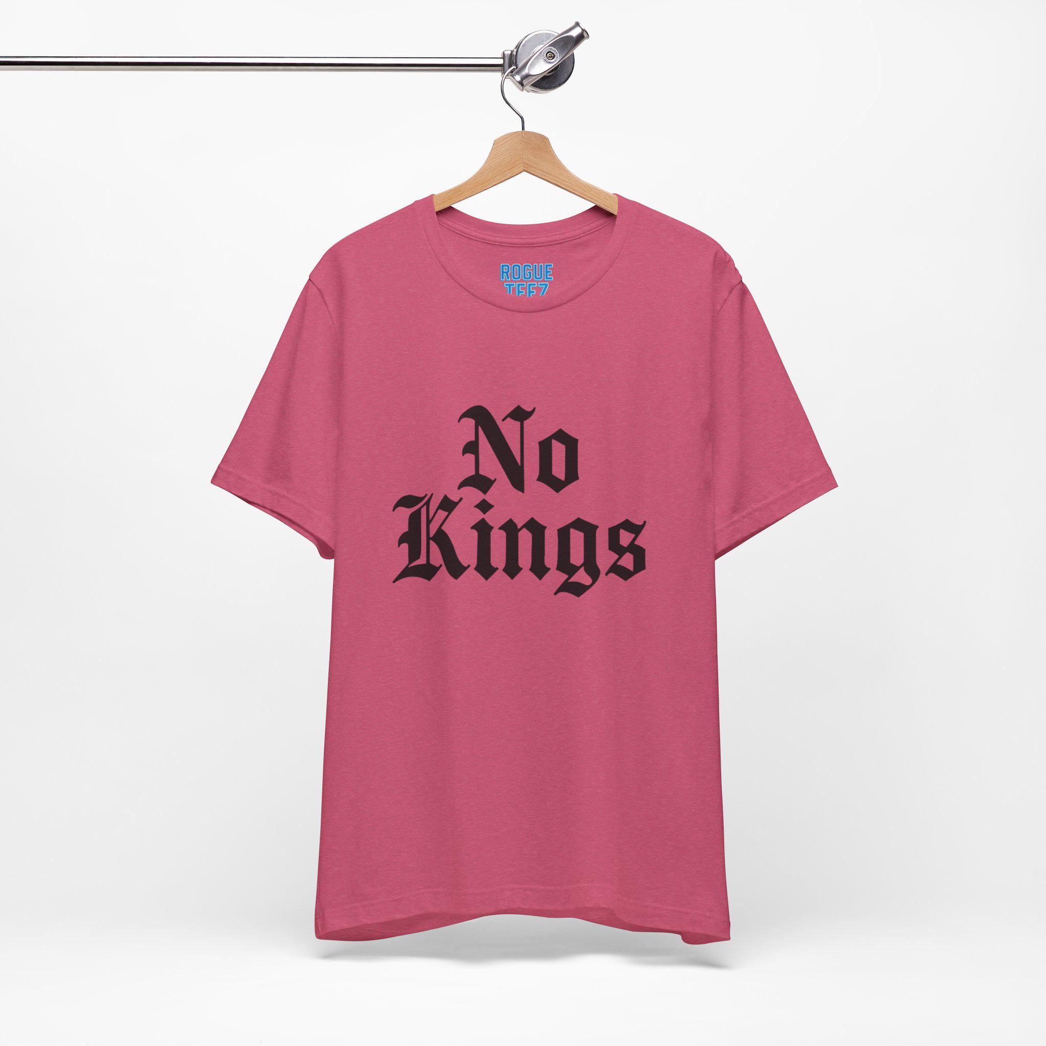 This Tee features a bold 'No Kings' design, perfect for those who want to make a statement. With its lightweight fabric and retail fit, it's ideal for casual wear or layering. This Tee is suitable for adults and is made with 100% Airlume combed and ring-spun cotton. The tear-away label ensures comfort while the ethical manufacturing process provides peace of mind for socially conscious buyers. Perfect for everyday wear or for expressing individuality.