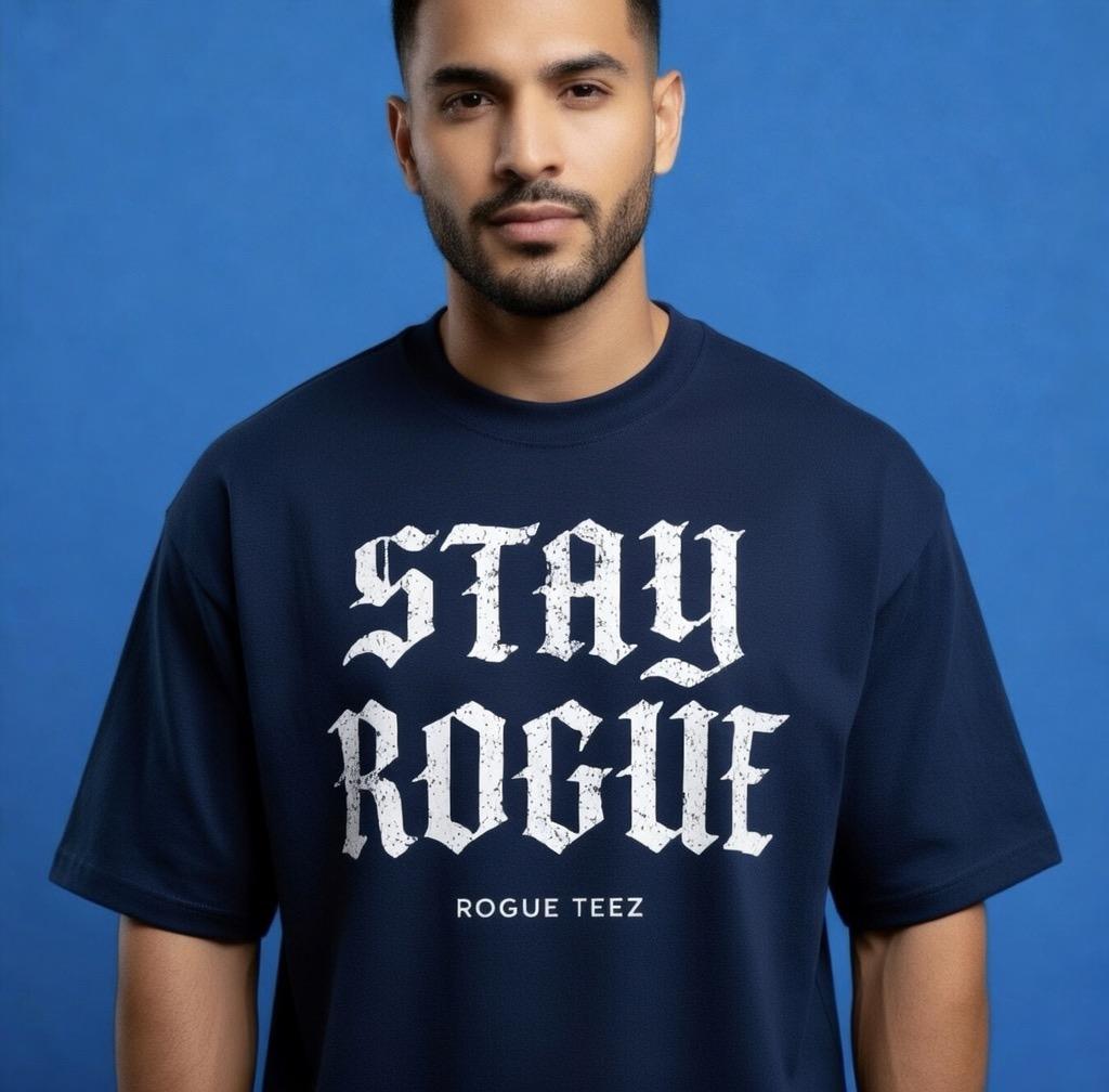 Stay Rogue T-Shirt – Bold Old English Typography Statement Tee