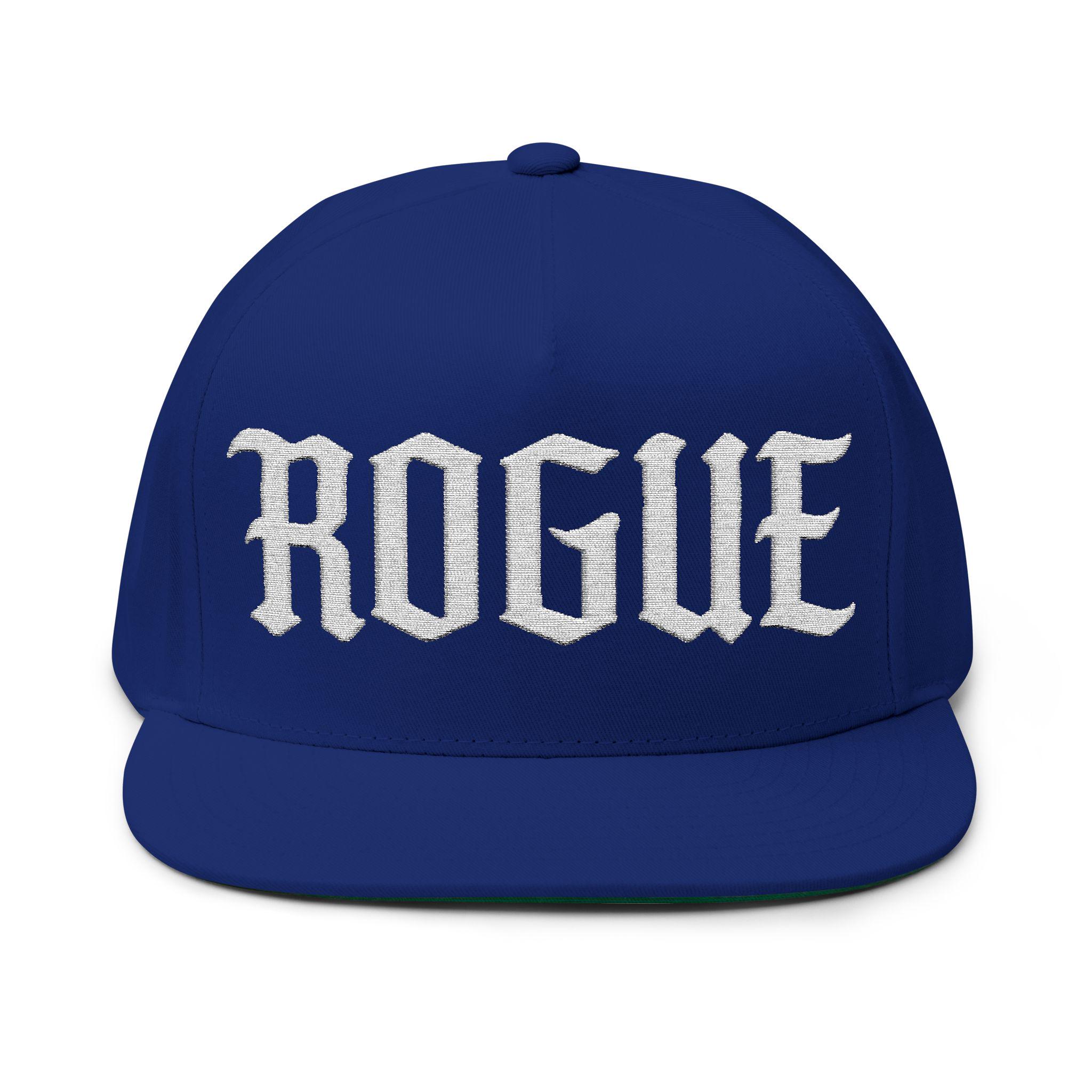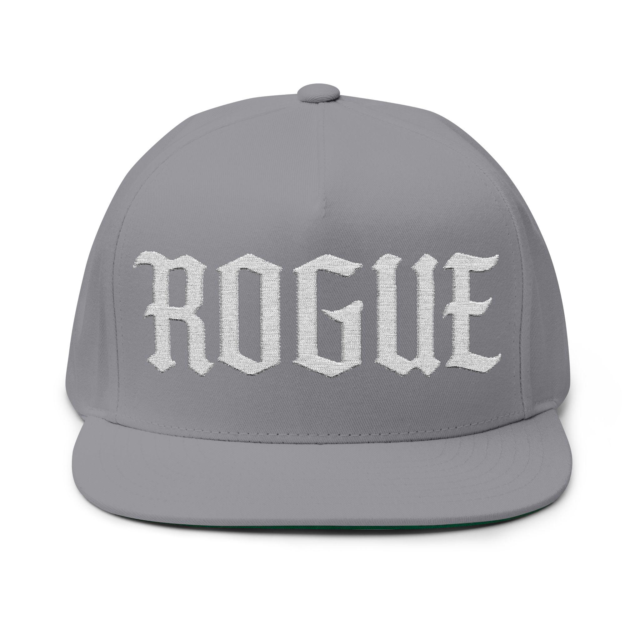 This structured flat-bill cap wears like a statement. Crisp white ROGUE lettering is embroidered across the front, standing out against a classic cotton-twill body that feels broken-in from the first wear. The five-panel, high-profile silhouette keeps the shape sharp while sewn eyelets and a green undervisor add subtle, purposeful details. The adjustable snapback lets you dial in a confident fit, whether you’re heading to a rooftop set, a midnight skate session, or just walking the city streets. It settles comfortably on a head that likes to stand apart — minimalist, direct, a little rebellious.